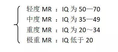 在智能障碍中,最重要的是有关精神发育迟缓内容,里面涉及到IQ等级的划分: